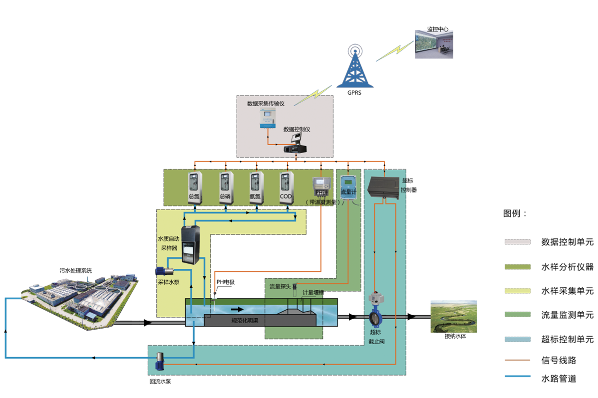 污染源水质在线监测系统适用于各排污企业对污染源水质排污监控及控制的需求。。该系统根据2020年国家技术规范(HJ353-2019)和其他标准进行设计,,由实现水污染源流量监测、、、水污染源水样采集、、、、分析及分析数据统计与上传等功能的软硬件设施组成的系统。。该系统具有监测数据实时采集、、、、传输、、、管理、、质控、、、、反控等功能,,,,还具有水质治理设施运行情况分析功能和排污总量控制功能。。。。